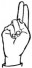 На ћирилици написано КОСТАДИН СИМИЏИЋ састоји се из 15 слова [?]. Исписано ћириличном једноручном азбуком за глувонеме:
